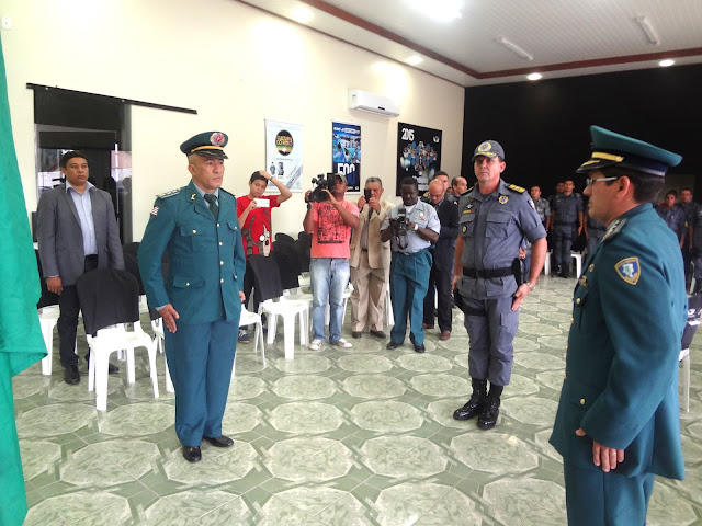 Sob o olhar do Comandante de Policiamento de Área de Interior, Coronel Ozório, Major Brandão passa o Comando ao Major Osmar Alves da Silva Filho.
