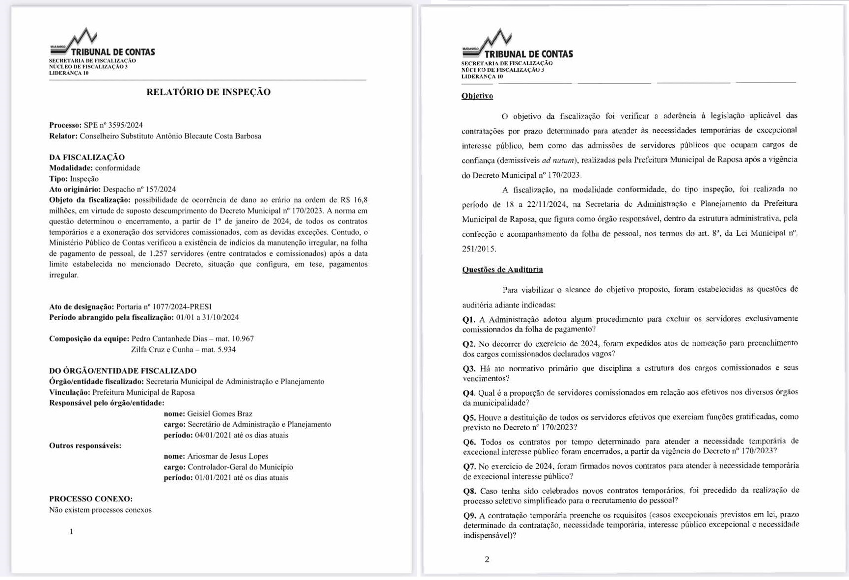 Parte do Relatório do TCE-MA na prefeitura de Raposa…