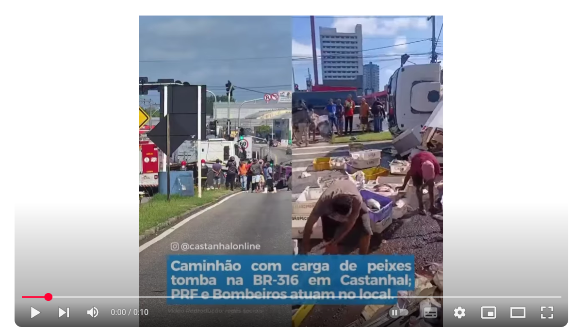 Na manhã desta segunda-feira (11), um caminhão baú carregado com dezenas de toneladas de peixes tombou na BR-316, próximo ao cruzamento com a avenida Floriano Peixoto na cidade de Castanhal – PA.