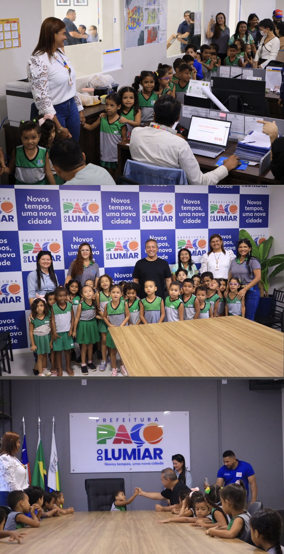 A manhã desta quinta-feira (29) foi marcada por sorrisos, curiosidade e muitos pedidos especiais na sede da Prefeitura de Paço do Lumiar. O prefeito Fred Campos recebeu uma visita pra lá de encantadora: as crianças da Escola Comunitária Nova Canaã, que estão participando de um projeto pedagógico da escola voltado para o conhecimento dos espaços públicos do município.