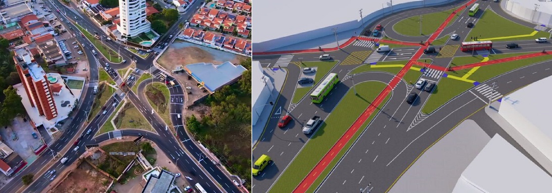 No agora “Cruzamento do Caolho”, Braide ao anunciar a “maquete publicitária”, colocou uma ciclofaixa como um dos equipamentos da nova obra.