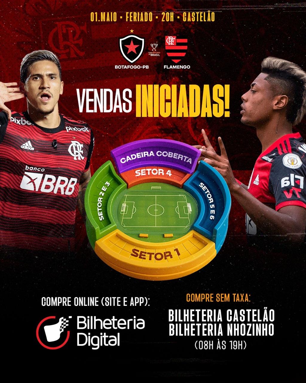 Em apenas 7 horas, 10 mil ingressos para o jogo entre Botafogo-PB e Flamengo são vendidos; Rubro-negro usará time titular