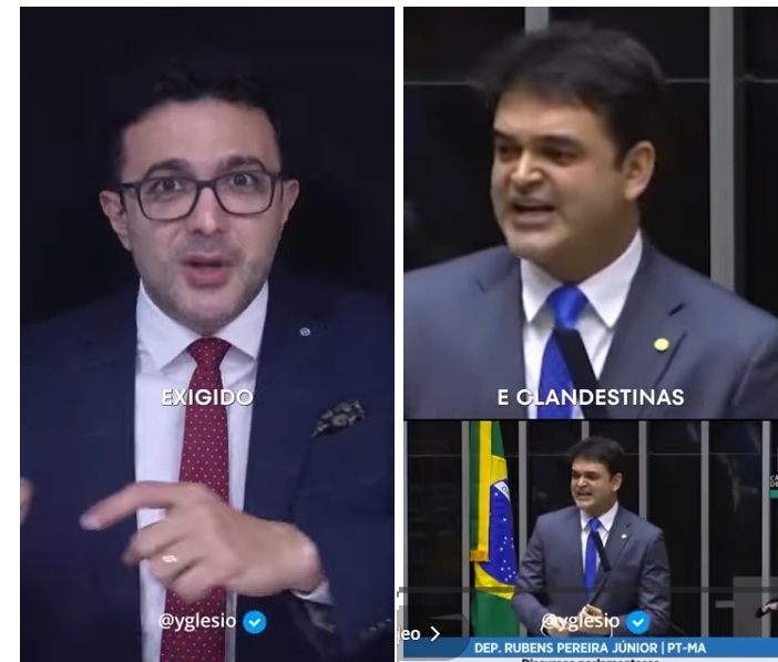 Em vídeo editado e publicado em suas redes sociais nestas quarta-feira (22), o deputado estadual Yglesio criticou severamente o pronunciamento do deputado federal Rubens Júnior feito na tribuna na Câmara Federal ontem (21), onde o parlamentar do PT anunciou rompimento com o governo estadual e deu sua versão sobre a conversa que teve com o ministro do STF, Flávio Dino, no que diz respeito a política do Maranhão e o imbróglio que diz respeito à vaga de conselheiro do Tribunal de Contas do Estado (TCE) do Maranhão.