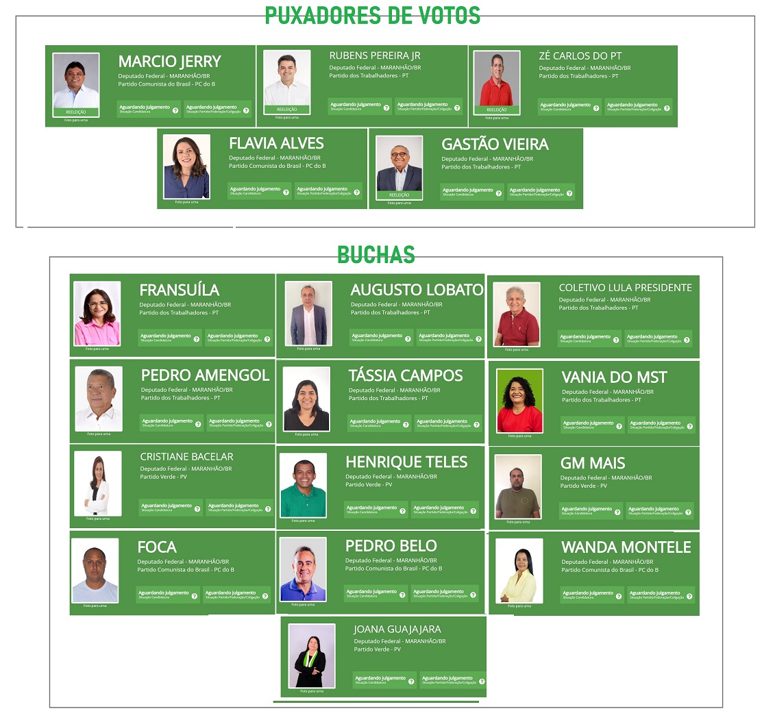 Seguindo normativa nacional, três partidos no Maranhão unira-se numa federação para a disputa das eleições deste ano. PT, PCdoB e PV registram juntos 18 candidatos a deputados federais no sistema da Justiça Eleitoral. Desses, 07 (sete) mulheres e 11 (onze) homens.
