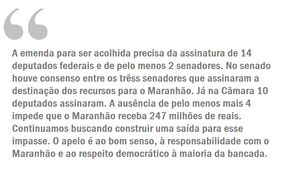 29 out 2019Jerry prega consenso para Maranhão não perder R$ 247 milhões Pelo Jornalista Domingos Costa Comente – Do deputado federal Márcio Jerry (PCdoB) via redes sociais, nesta semana, ao explicar o impasse que está ocorrendo em relação às Emendas de Bancada que podem fazer o Maranhão perder R$ 247 milhões em investimentos.0 ComentáriosDeixe o seu comentário! Nome: Email: Website: Mensagem:Os comentários são de responsabilidade exclusiva de seus autores e não representam a opinião do autor deste blog. Você também pode comentar usando o Facebook! Cancelar Resposta PesquisarPublicidadeSiga-me no Facebook Blog do DCContatosEmail: domingos.costa@hotmail.com WhatsApp: (98) 98807-7894Principais BlogsJorge VieiraO InformanteMatias MarinhoSilvia TerezaClodoaldo CorreaAntônio MartinsGláucio EriceiraIsaias RochaGilberto LedaMarrapá / Leandro MirandaMarco D’EçaJohn CutrimJorge AragãoDiego EmirNeto FerreiraDaniel MatosLuís PabloZeca SoaresMarcelo MinardAtual 7Gilberto LimaNeto CruzWerbeth SaraivaMaranhão de VerdadePortais de SLG1-MAO ImparcialImiranteMA10Sua CidadeTV GuaráJornal PequenoBlogs RegionaisCarlinhos (Pedreiras)Adonias Soares (Presidente Dutra)Kelly (Imperatriz)Antônio Filho (Olho D. das Cunhãs)Samuel Bastos (Coelho Neto)Blog do de Sá (Codó)Vandoval Rodrigues (Pinheiro)Antonio Marcos (Açailândia)Sérgio Matias (Bacabal)Jonas Filho (Caxias)Minuto Barra (Barra do Corda)O Municipalista (Baixada)Sites ÚlteisAgência NotíciasMP-MATRE-MATCE-MATJ-MAMPF-MADetran-MAGoverno do MAPrefeitura de São LuísAssembleia LegislativaCâmara de São LuísSenadoCâmara FederalDiário OficialIBGEImpressa NacionalG1FolhaR7TerraEstadaoO GloboUolMSNBandDiário do PoderCorreio BrazilienseExtraResvistaContigoVejaIsto ÉCaras e NomesExameO FuxicoBlogs NacionaisAntagonistaReinaldo AzevedoCamarottiNoblatLauro JardimClaudio HumbertoMetaAcessarFeed de postsFeed de comentáriosWordPress.org