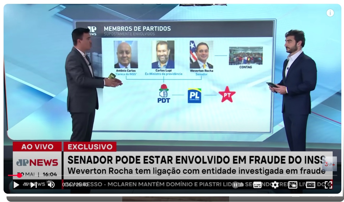 VÍDEO: JOVEM PAN diz que senador Weverton Rocha pode estar envolvido em fraude do INSS