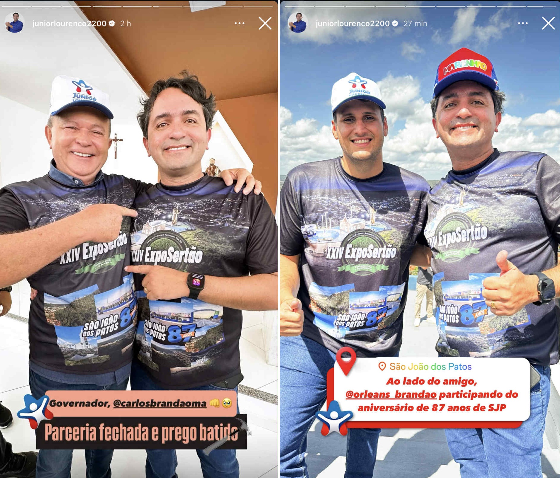 Logo em seguida, Lourenço postou outro imagem, desta vez, ao lado do secretário de Estado de Assuntos Municipalistas do Maranhão, Orleans Brandão, que deverá ser o candidato ao governo apoiado pelo tio.