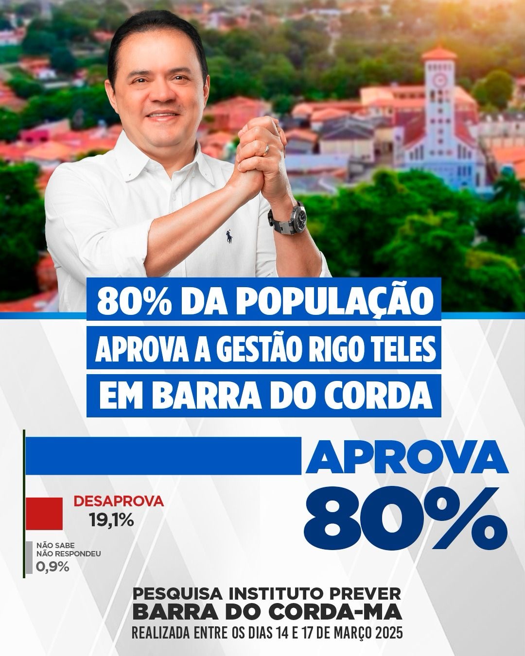 MARÇO 2025: Gestão Rigo Teles tem aprovação de 80% em Barra do Corda, diz pesquisa Prever