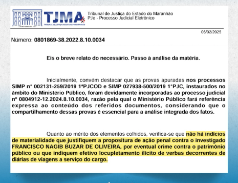 O Ministério Público do Maranhão (MPMA) solicitou, no dia 6 de fevereiro, o arquivamento de uma denúncia contra o deputado estadual Francisco Nagib (PSB) por supostas irregularidades na concessão de diárias quando ele era prefeito de Codó.