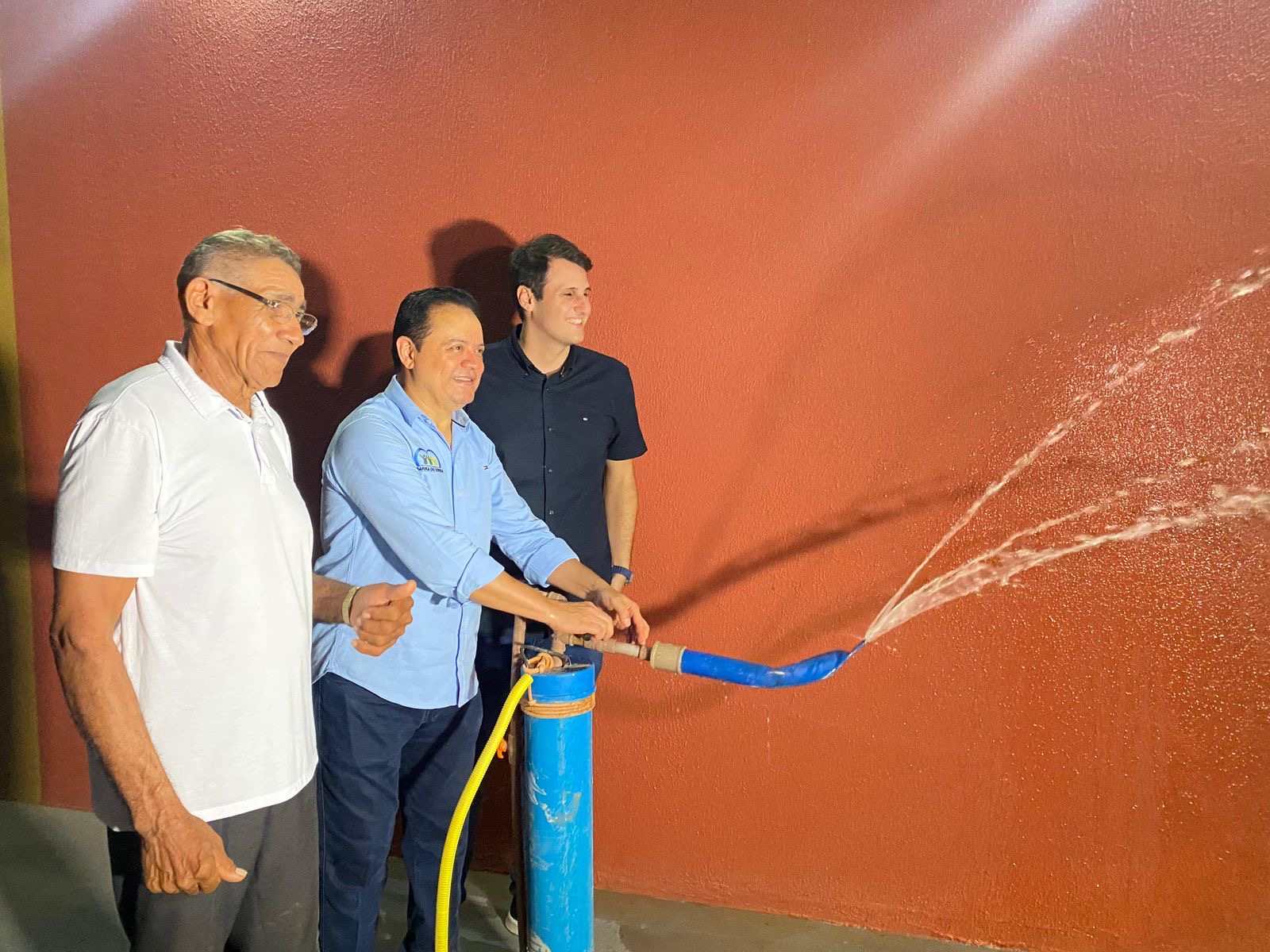 Além da escola, foi inaugurado um poço artesiano com alta vazão de água para atender a comunidade escolar.