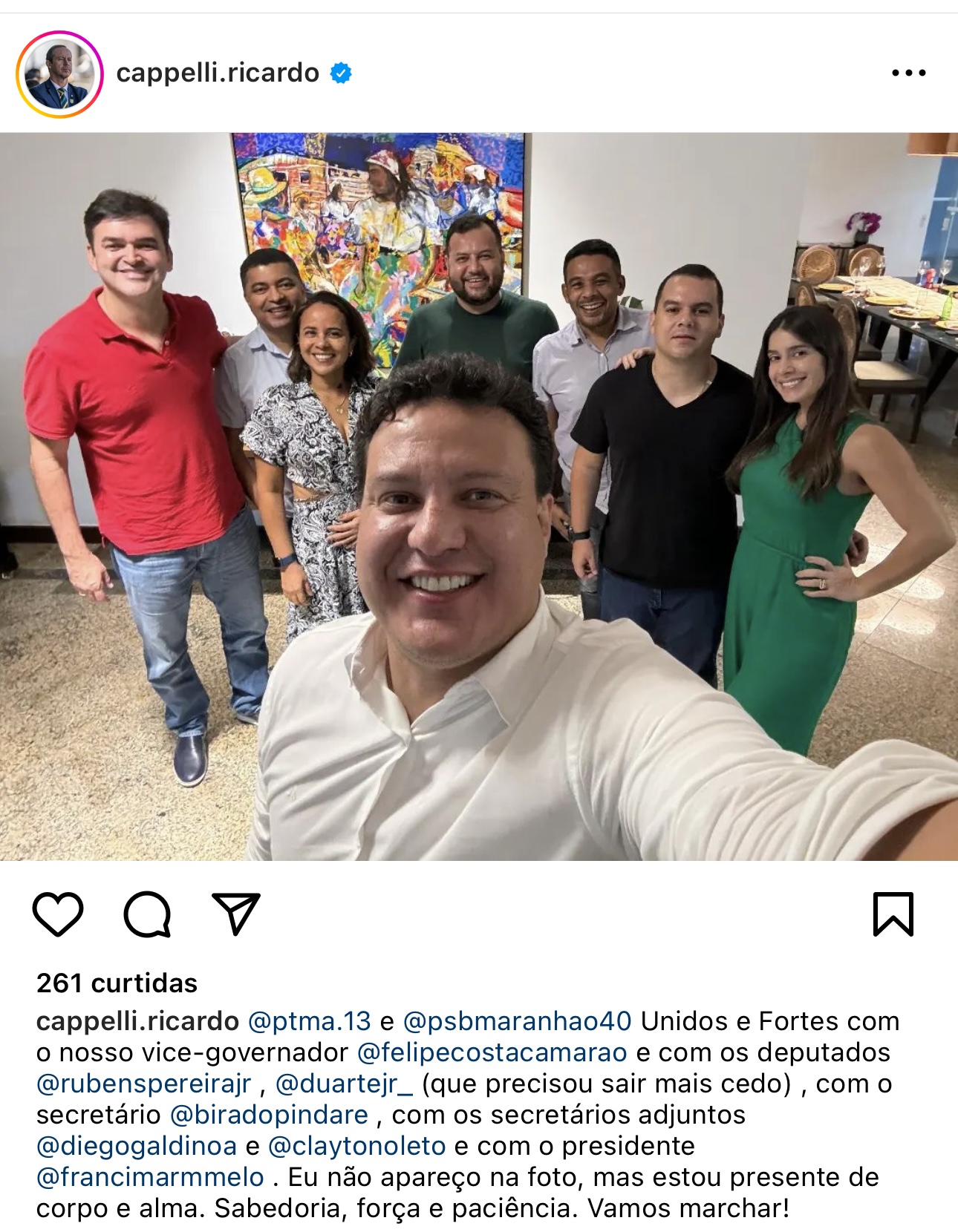 Ocorrido na casa do vice-governador Felipe Camarão, o encontro reuniu nomes como o presidente do PT, Francimar Melo, os deputados federais Rubens Júnior e Duarte Júnior, o secretário Bira do Pindaré, e os ex-secretários de Flávio Dino Clayton Noleto, Diego Galdino e, à distância, Ricardo Cappelli.