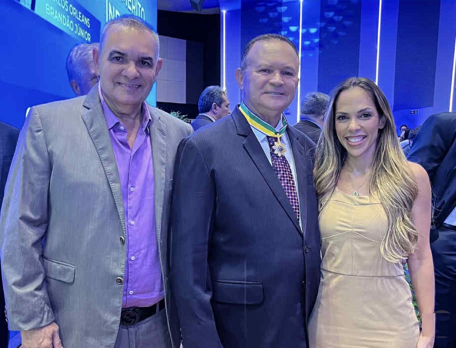 Júnior Viana ladeado pelo Governador Brandão e da esposa, Carol Hortegal.