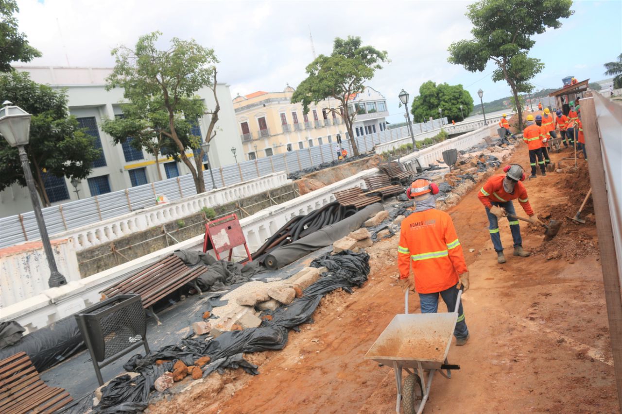 Após liberação do Iphan, Sinfra retoma obra de reconstrução do muro da Praça Dom Pedro II