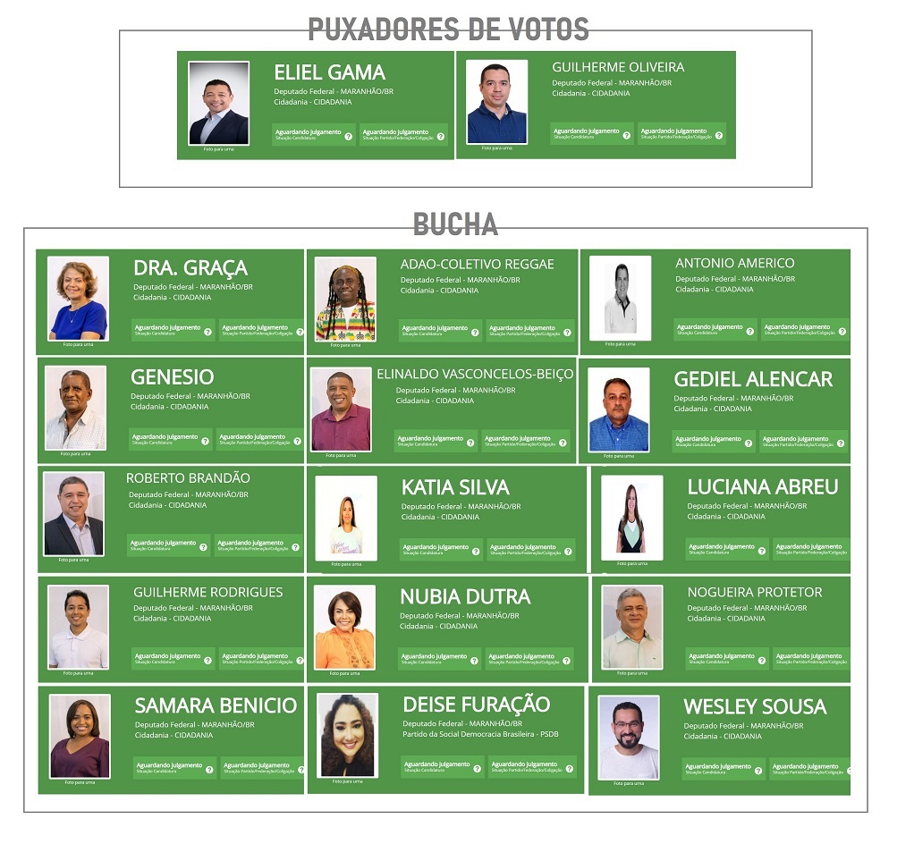 O partido tem apenas dois fracos puxadores de votos, Eliel Gama – irmão da desgastada Senadora Eliziane Gama e do ex-presidiário Guilerme Oliveira – preso pela Polícia Federal na Operação Êxodo em último dia 1º de junho por fraude no INSS.