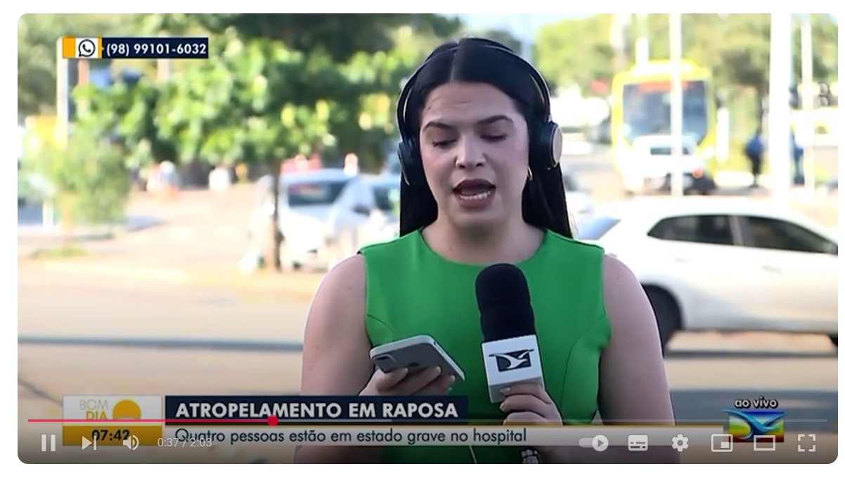 O Bom Dia Mirante, programa da TV Mirante, da Rede Globo, exibiu durante edição desta sexta-feira (06) o caso do sobrinho da primeira-dama de Raposa que atropelou quatro pessoas na tarde desta quinta-feira (05) na Avenida Principal do bairro do Inhaúma no município de Raposa.