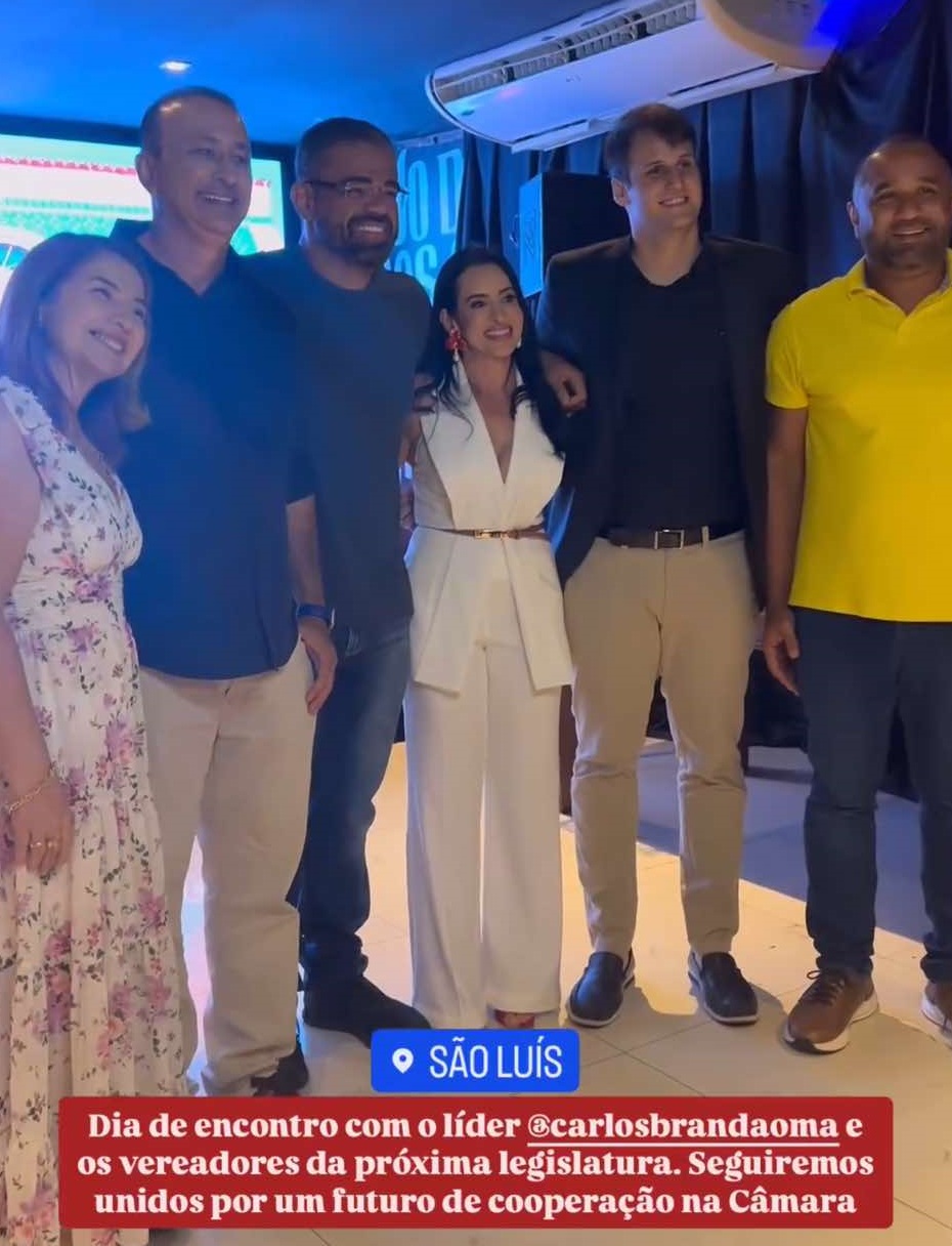 Quem também esteve como presença ilustre na reunião foi a presidente da Assembleia Legislativa, a deputada estadual Iracema Vale, do PSB; o secretário de Estado Extraordinário de Assuntos Municipalistas, Orleans Brandão; o presidente do MDB no Maranhão e diretor de Relações Institucionais da Assembleia Legislativa, Marcus Brandão, e a sua esposa, a empresária Audreia Noleto.