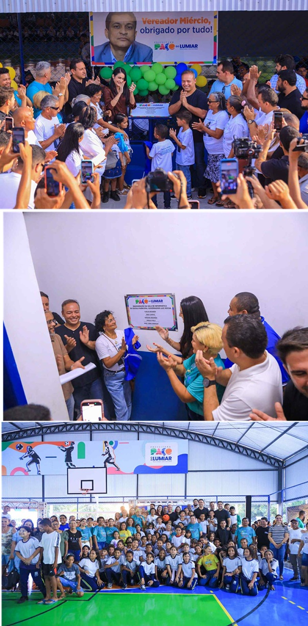 Prefeito Fred Campos inaugura Quadra Poliesportiva em homenagem do Vereador Miércio Martins e Sala de Informática em Paço do Lumiar