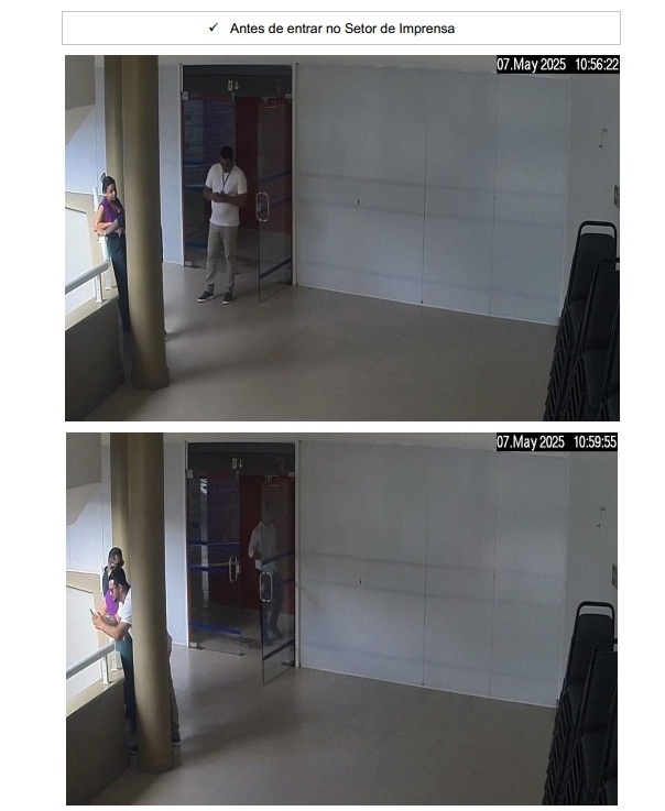 Imagens de câmeras do circuito interno da Assembleia Legislativa do Maranhão, fornecidas ao Blog do Domingos Costa pela deputada Mical Damasceno, PSD, provam que o blogueiro Victor Landim, de fato, estava na galeria de imprensa da ALEMA assistindo o discurso, apenas cinco metros de distância da tribuna, no instante que a parlamentar fazia duras críticas contra o vice-governador Felipe Camarão (PT), no dia 07 de maio, às 11h31.