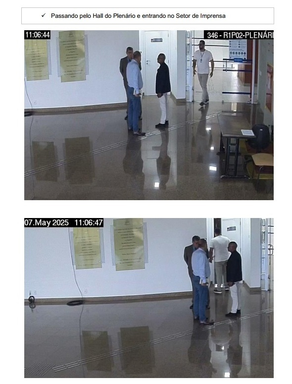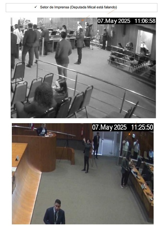 11h42 – O blogueiro fica de pé no mesmo local por 36 minutos, trocando mensagem com “alguém” ao celular, simultaneamente a deputada Mical discursa. Victor sai da galeria às 11h42, curiosamente após o pronunciamento de Damasceno.