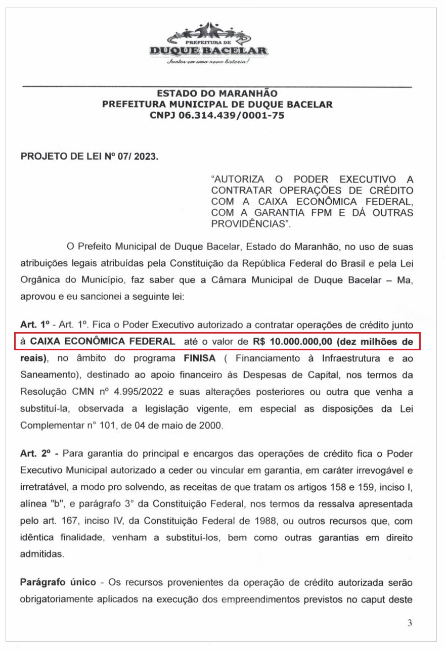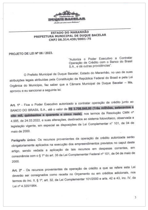 Flávio Furtado, do PDT, prefeito de Duque Barcelar, decidiu “vender” o município para o Banco do Brasil e para a Caixa Econômica Federal. Isso porque o gestor pedetista formulou dois pedidos de empréstimos junto às duas instituições financeiras e enviou para a Câmara de Vereadores.